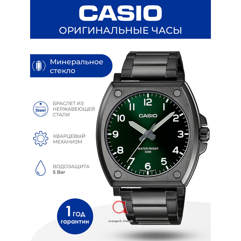 Элегантные и стильные наручные часы Casio MTP-E730B-3A идеально подойдут для взрослой аудитории. Они сочетают в себе классический дизайн с современными технологиями. Часы имеют аналоговый способ отображения времени с арабскими цифрами на зеленом циферблате, который отлично виден даже в темноте благодаря подсветке. Черный корпус и браслет из нержавеющей стали придают часам элегантный и сдержанный вид.