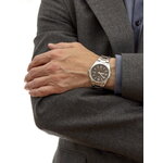 Часы имеют подсветку для удобства использования в темное время суток. Корпус хромированный, а браслет выполнен из комбинированной кожи серебристого цвета. Коричневый циферблат подчеркивает изысканный стиль этой модели.