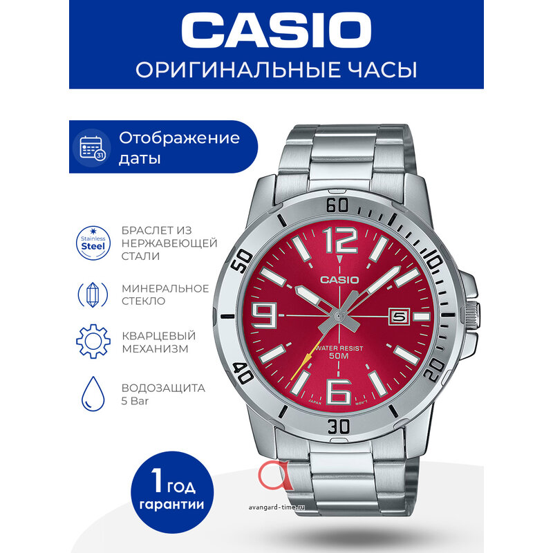 Мужские наручные часы Casio MTP-VD01D-4B - идеальный выбор для ценителей классического стиля и надежности. Эти аналоговые часы с круглым корпусом, покрытым хромом, и браслетом из нержавеющей стали, придадут вашему образу изысканности и статусности. С ярким красным циферблатом и подсветкой вы с легкостью сможете видеть время даже в темное время суток. Удобный календарь и комбинированный тип индикации добавляют функциональности этим часам. Кварцевый механизм обеспечит точность хода, а стойкость к воде до 5 Bar делает их надежным аксессуаром на каждый день. Подчеркните свой стиль с часами Casio MTP-VD01D-4B и будьте уверены в своем выборе. Для взрослой аудитории. Гарантия 1 год. Страна-изготовитель - Китай.
