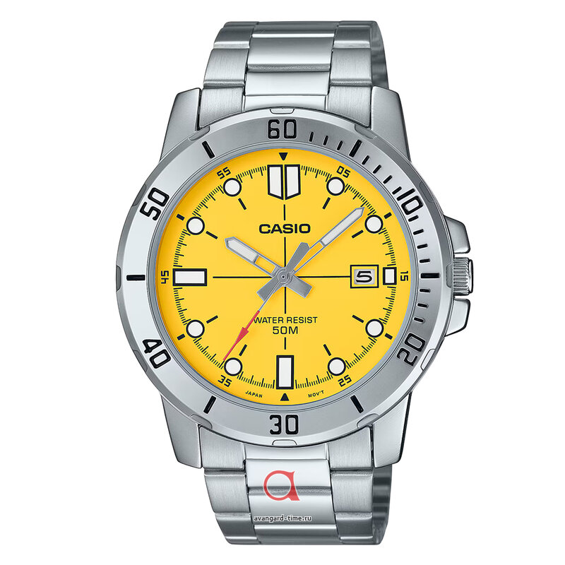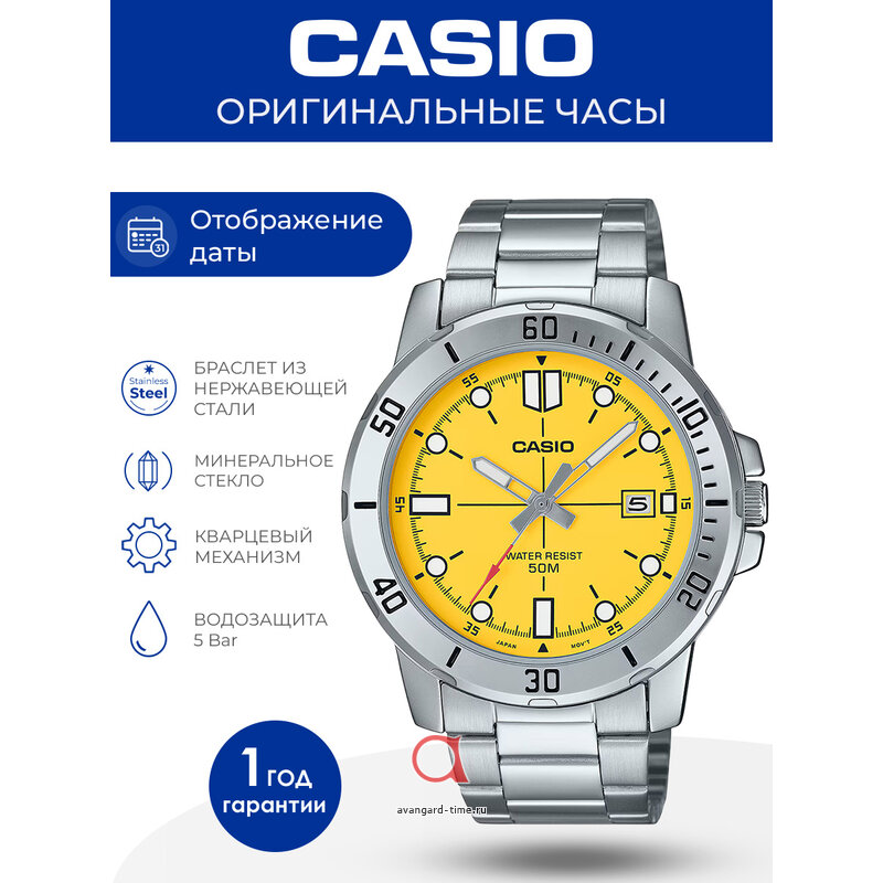 Представляем вашему вниманию элегантные наручные часы MTP-VD01D-9E от известного бренда Casio. Эти классические аналоговые часы идеально подойдут для взрослой целевой аудитории. Циферблат желтого цвета привлекает взгляд, а подсветка делает часы удобными в использовании в любое время суток. Изготовленные из нержавеющей стали, они прочные и долговечные. Стекло минеральное, что обеспечивает защиту от царапин. Календарь и комбинированный тип индикации делают использование часов еще более удобным. Отличный выбор для стильного мужчины! Приобретая часы Casio, вы получаете качественный продукт с гарантией на 1 год. Успейте купить по выгодной цене!