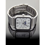 Корпус часов выполнен из нержавеющей стали с хромированным покрытием, что придаёт им современный и стильный вид. Прямоугольная форма часов отлично дополнит любой образ, будь то деловой или повседневный стиль. Серебристый цвет корпуса и браслета создает гармоничное сочетание, которое не выходит из моды и подчеркивает индивидуальность владельца.