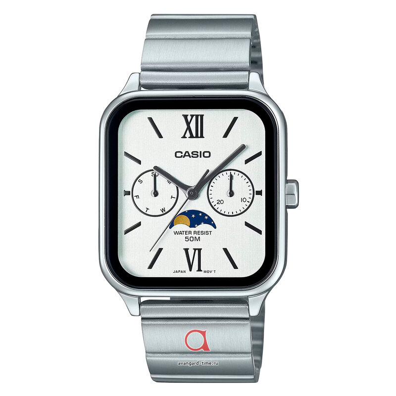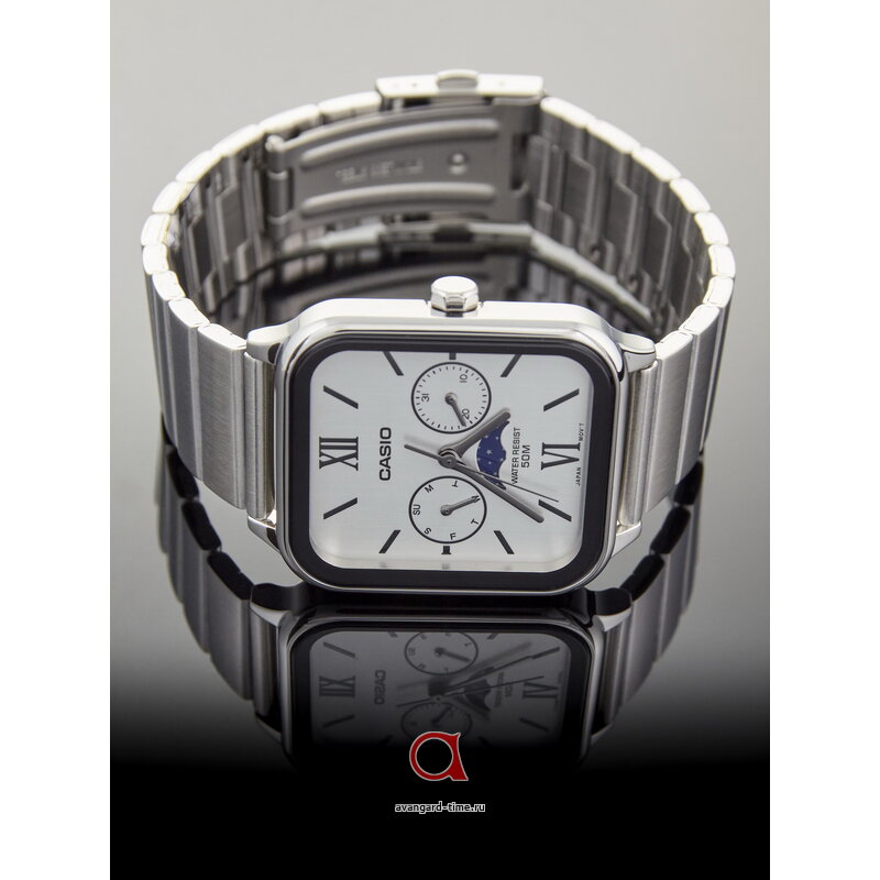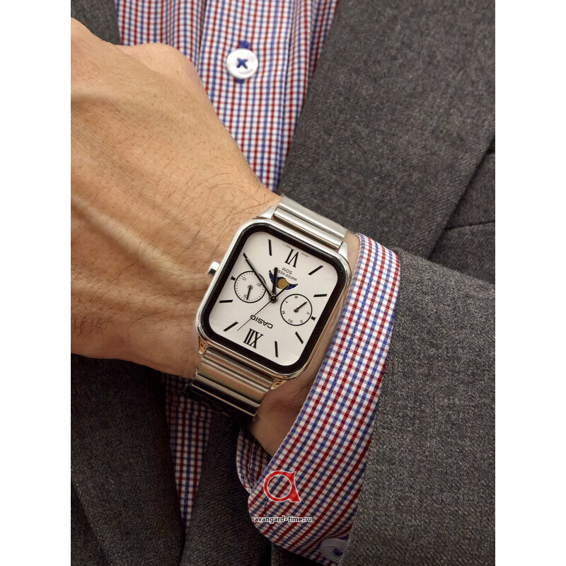 Часы Casio MTP-M305D-7A2 оборудованы комбинированной индикацией времени, а дополнительные циферблаты обеспечивают максимальное удобство в использовании. Они также оснащены функцией календаря и индикатором фазы луны, что делает их не только стильным аксессуаром, но и полезным инструментом для планирования. Длина ремешка составляет 190 мм, а ширина – 20 мм, что обеспечивает комфортную посадку на запястье.