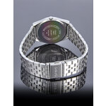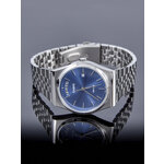 Серебристый браслет и хромированный корпус из нержавеющей стали создают элегантный и современный внешний вид. Округлая форма и глубокий синий циферблат с четкими метками обеспечивают легкость восприятия времени. Длина ремешка составляет 185 мм, ширина — 22 мм, что делает часы максимально комфортными при ношении на запястье.
