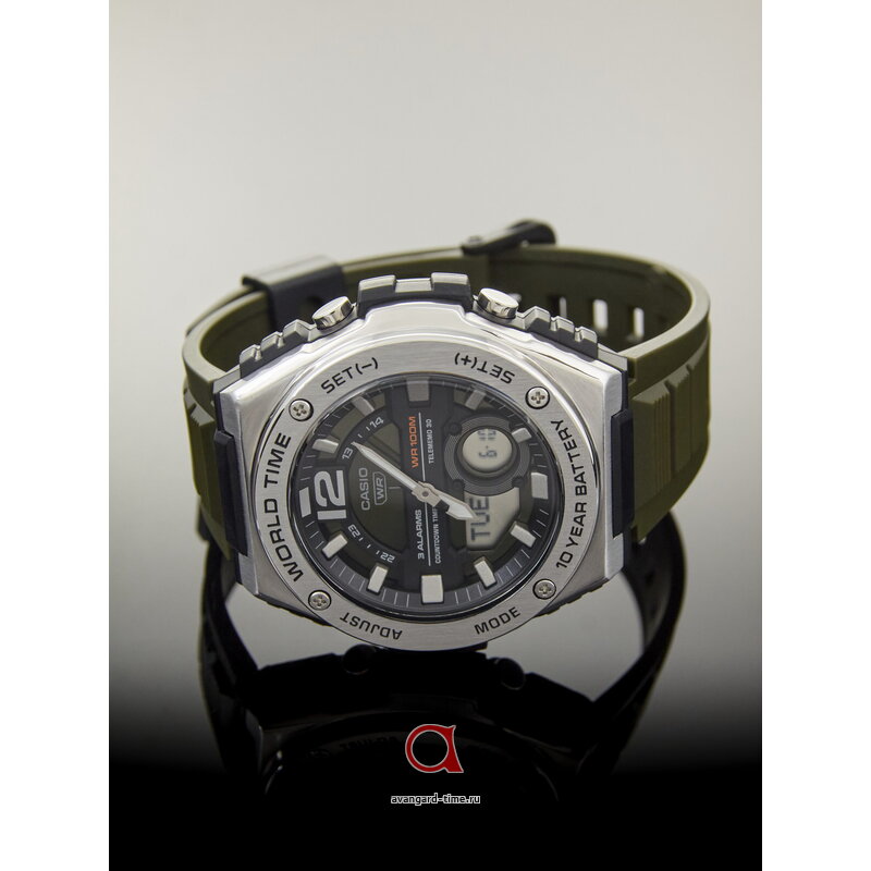 Ставь акцент на своей стильной образованности с наручными часами MWQ-100-3A от Casio! Эти часы сочетают в себе аналоговый и цифровой способы отображения времени, обладают классическим стилем и характеризуются четкостью и точностью. Полиуретановый ремешок в черном цвете обеспечивает комфорт и долговечность, а зеленый циферблат и арабские цифры делают их ярким акцентом на вашем запястье. Благодаря подсветке вы всегда будете видеть время даже в темное время суток. Будильник, календарь, секундомер, второй часовой пояс и таймер делают эти часы незаменимыми аксессуарами. Электронные часы на батарейке с гарантией 1 год подчеркнут вашу надежность и стиль. Длина ремешка 200 мм, ширина 25 мм. Изготовлено в Китае из полимерного пластика с минеральным стеклом и классом водонепроницаемости 10 Bar. Подчеркните свою надежность с наручными часами Casio MWQ-100-3A!