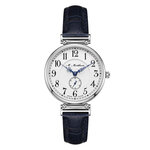 Часы отображают время аналоговым способом с арабскими цифрами на белом циферблате. Корпус из нержавеющей стали серебристого цвета выглядит изысканно и стильно. Качественный сапфировый циферблат обеспечит надежную защиту от царапин.