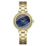 Часы оснащены аналоговым способом отображения времени и синим циферблатом без отметок, что делает их особенно привлекательными для модниц. Золотистый корпус и браслет из нержавеющей стали придают этим часам роскошный вид.
