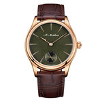 Зеленый цвет циферблата придает этим часам особый шарм, а сапфировое стекло защищает их от повреждений. Механизм часов - пружинный, обеспечивающий точное отображение времени.