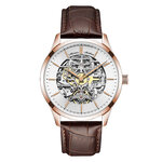 Корпус часов выполнен из нержавеющей стали, обладающей не только прочностью, но и стильным оттенком розового золота, который придаёт часам особую изысканность. Шьется ремешок из высококачественной коричневой кожи, обеспечивая максимальный комфорт при носке. Длина ремешка составляет 200 мм, а ширина — 21 мм, что позволяет легко регулировать его под любой запястье.