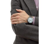 Браслет из нержавеющей стали с темно-серым оттенком идеально дополняет дизайн часов. Голубой цвет циферблата и отметки типа индикации делают их стильными и легко читаемыми. Календарь, интегрированный в часы, поможет вам быть в курсе даты.