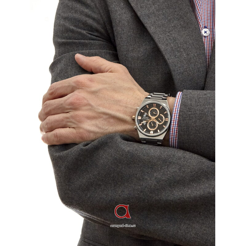 Изготовленные из нержавеющей стали, они надежны и прочны, а благородный хромированный цвет корпуса и браслета добавит вам статусности. Стильные и функциональные, эти часы оснащены дополнительными циферблатами для второго часового пояса, календарем и отметками для точного времени.