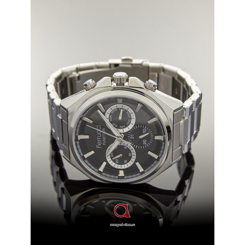 Представляем вам стильные и элегантные наручные часы FERRUCCI 03319-01! Этот классический аксессуар с аналоговым способом отображения времени и формой круглого циферблата станет прекрасным дополнением вашего образа. Хромированный корпус и серебристый браслет из нержавеющей стали придают часам изысканный вид. Черный цвет циферблата с яркими отметками и действующими дополнительными циферблатами делают их удобными в использовании. Часы оснащены календарем и работают от батарейки, а стекло из минерального материала обеспечивает надежную защиту. Механизм VX9 от EPSON FUNCTION MVT обеспечивает точность хода. Эти кварцевые часы идеальны для взрослой аудитории, идеальны для повседневного использования. Гарантия на изделие составляет 1 год. Приобретайте качественные наручные часы FERRUCCI 03319-01 и подчеркните свой стиль и хороший вкус!