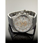Часы имеют аналоговый способ отображения времени с серебристым циферблатом и отметками. Их корпус выполнен из хромированного сплава, а браслет из нержавеющей стали также хромированного цвета.
