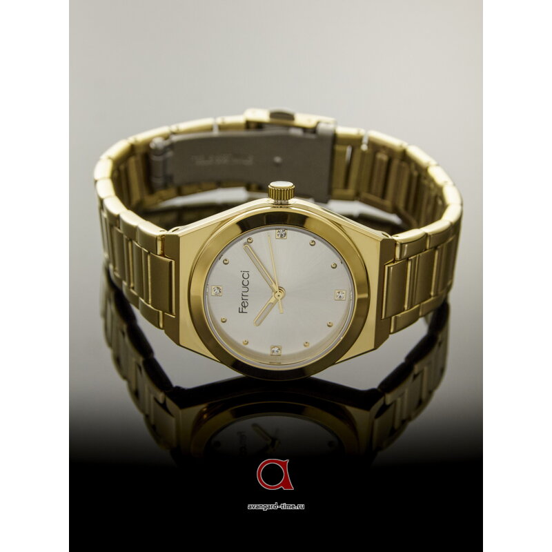 Шикарные наручные часы FERRUCCI 03268-05 добавят в ваш образ долю изысканности и стиля. Этот модный аксессуар в золотистом цвете сделан из нержавеющей стали, что обеспечивает долговечность и надежность. Серебристый циферблат с яркими стразами создаст впечатляющий вид. Часы имеют аналоговый способ отображения времени с отметками. Подсветка обеспечивает удобство использования при любом освещении. Механизм на батарейке гарантирует точность хода. Эти женские часы идеально подойдут взрослой аудитории, добавляя образу утонченности и элегантности. Бренд FERRUCCI из Турции - знак качества и стиля. Гарантия на товар - 1 год. Представьте себя в лучшем свете с часами FERRUCCI 03268-05!