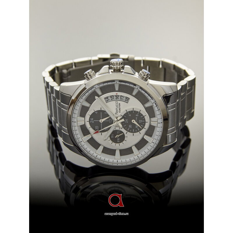 Шикарные наручные часы FERRUCCI 03271-06 - это классическое сочетание стиля и функциональности. Аналоговый способ отображения времени дополнен подсветкой, что делает удобным использование даже в темное время суток. Круглая форма корпуса из хромированного сплава и ремешок из нержавеющей стали в серебристом оттенке придают часам элегантный вид. Серебристый циферблат с отметками и дополнительными циферблатами для второго часового пояса делают их незаменимым аксессуаром для взрослых. Часы работают от батарейки, имеют календарь и гарантию 1 год. Водонепроницаемость 3 Bar и минеральное стекло обеспечивают долговечность и надежность. Бренд FERRUCCI из Турции известен качеством своей продукции. Подарите себе или своим близким роскошные часы, которые подчеркнут ваш стиль и хороший вкус. Made in China.