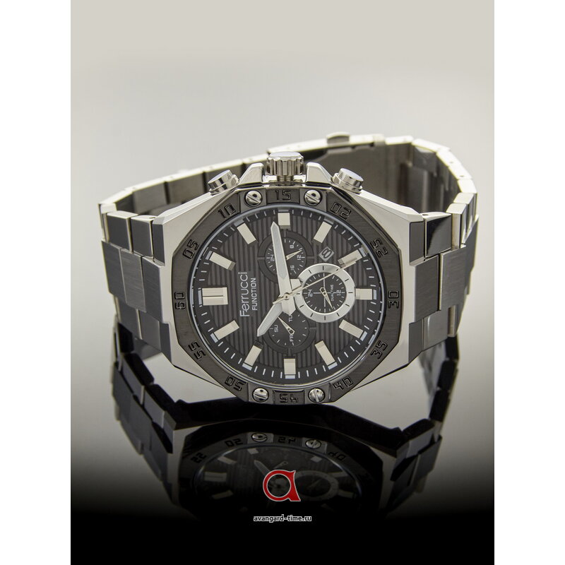 Классические наручные часы FERRUCCI 03257-04 идеально подойдут для делового стиля и повседневного образа. Аналоговый способ отображения времени четко показывает время, а подсветка дает возможность с легкостью смотреть на часы в темное время суток. Хромированный корпус и серебристый браслет из нержавеющей стали придают часам элегантный вид. Черный циферблат с действующими дополнительными циферблатами и календарем позволяют быть в курсе всех необходимых данных. Часы имеют второй часовой пояс и работают от батарейки. Стекло часов минеральное, что обеспечивает надежную защиту от царапин. FERRUCCI 03257-04 отличаются стильным дизайном и высоким качеством, безупречно подходят для взрослых мужчин. Гарантия от производителя на товар составляет 1 год. Приобретайте часы FERRUCCI 03257-04 и ощутите на себе непревзойденный стиль и надежность! Made in China, бренд из Турции.