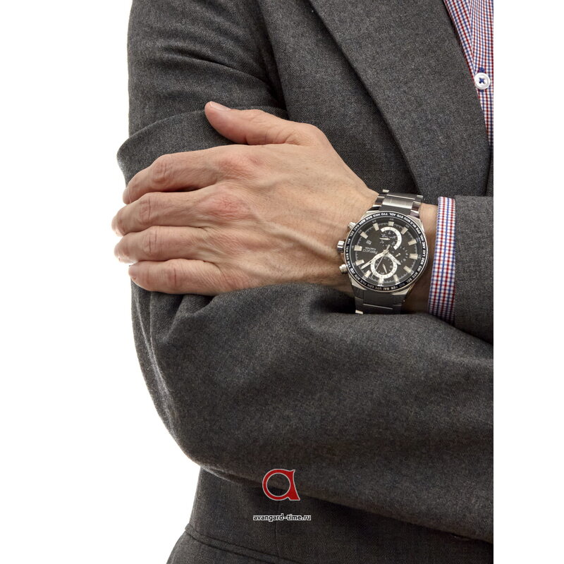 Черный цвет циферблата с комбинированной индикацией и дополнительными циферблатами делает их функциональными и удобными. Благодаря источнику энергии от батарейки вы всегда будете точно знать время.