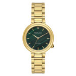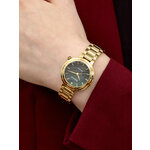 Часы обладают аналоговым способом отображения времени и имеют круглый корпус, выполненный из легкого и прочного сплава. Золотистый цвет корпуса и браслета, изготовленного из нержавеющей стали, подчеркивает вашу утонченность и изысканность. Нежный зеленый циферблат с отметками и блестящими стразами привлекает внимание и добавляет изюминку вашему образу.
