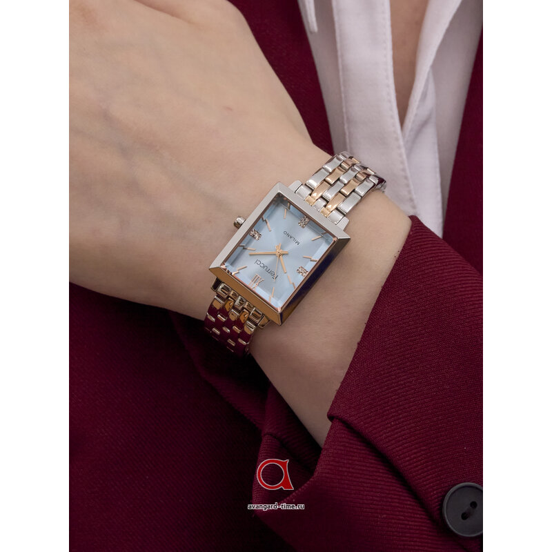 Циферблат в нежном голубом цвете с комбинированной индикацией и эффектными стразами добавляет нотку романтики и изысканности, превращая каждые часы в настоящий аксессуар, способный привлечь внимание. Кварцевый механизм обеспечивает высокую точность хода, а 3-бартовая водонепроницаемость делает их идеальным спутником в любых условиях.