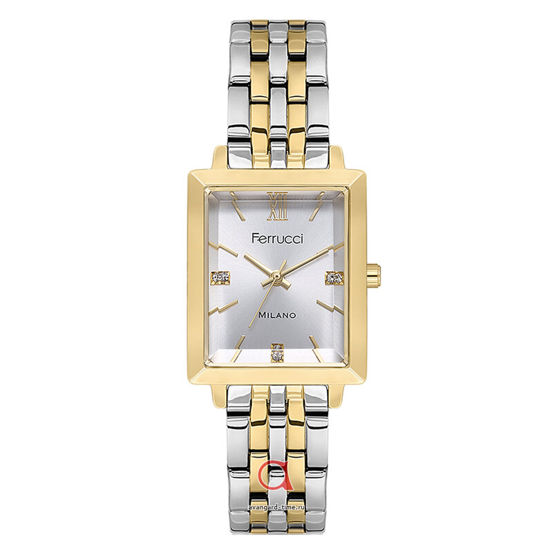Откройте для себя утонченность и стиль с наручными часами FERRUCCI 03476-06, которые идеально подойдут как для повседневного ношения, так и для особых случаев. Эти часы с аналоговым отображением времени имеют прямоугольную форму, что придаёт им современный и элегантный вид. Золотистый корпус из прочного сплава (Alloy) гармонично сочетается с блестящим хромированным браслетом из нержавеющей стали, который обеспечивает не только стиль, но и долговечность.