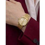 С их круглыми золотистыми формами и ярким циферблатом, украшенным стразы, вы всегда будете в центре внимания. Корпус из легкого сплава и ремешок из нержавеющей стали гарантируют долговечность и прочность, а их гармоничное золотистое сочетание добавляет нотку роскоши в ваш образ.