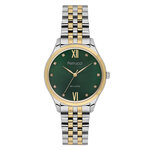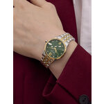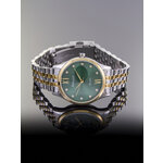 Зеленый циферблат, украшенный комбинированной индикацией, гармонично дополняется стильными стразами, которые добавляют нотки роскоши и шика. Нержавеющая сталь ремешка в цвете хрома обеспечивает комфорт и долговечность, а его длина 168 мм и ширина 16 мм подходят для большинства запястий.