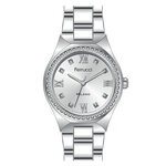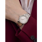 Циферблат серебристого цвета с комбинированной индикацией привлекает внимание, а добавленные стразы добавляют нотку роскоши и блеска. Часы оснащены долговечным кварцевым механизмом, работающим от батарейки, что гарантирует надежность и точность в любом случае.