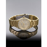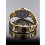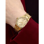 Часы имеют классический аналоговый способ отображения времени, который дополняется элегантным дизайном в стиле Fashion. Круглая форма корпуса выполнена из прочного сплава, а его золотистый цвет придаёт изделию нотку роскоши. Цвет циферблата также золотистый, что гармонично объединяет все элементы и добавляет шика.