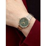 Циферблат в утонченном зеленом оттенке с отметками и сверкающими стразами привлекает взгляд и является настоящим произведением искусства. Эти часы прекрасно подойдут как для повседневного использования, так и для торжественных мероприятий, добавляя вашему образу нотки шика и стиля.