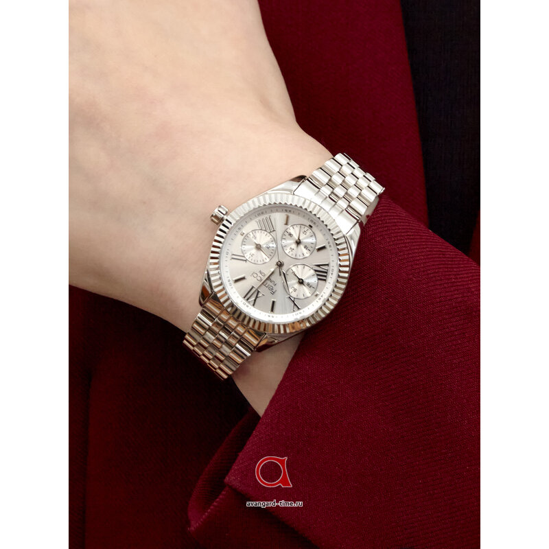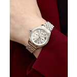Ремешок из нержавеющей стали также хромированного цвета гармонично дополняет дизайн, обеспечивая надежность и долговечность. Длина ремешка составляет 165 мм, а ширина — 16 мм, что делает эту модель идеально подходящей для большинства запястий. Кроме того, интегрированный календарь станет полезной функцией для активных женщин, ценящих порядок в делах.