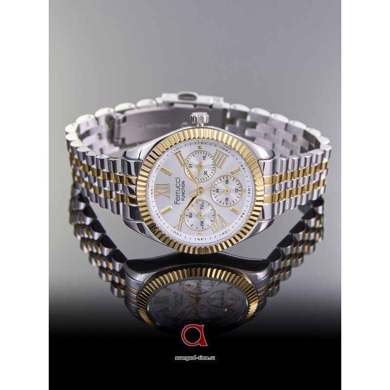 Часы наручные FERRUCCI 03486-02 – идеальный аксессуар для стильной и уверенной в себе женщины. Эти классические кварцевые часы с аналоговым способом отображения времени, выполненные в элегантном круглом дизайне, подчеркнут ваш утонченный вкус и статус. Хромированный корпус и браслет из нержавеющей стали обеспечивают не только долговечность, но и стильный внешний вид, который будет великолепно сочетаться с любым нарядом.