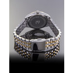 Циферблат серебристого цвета украшен комбинированной индикацией, а действующие дополнительные циферблаты придают этим часам особую функциональность. Вам больше не нужно беспокоиться о времени – четкие метки и красивые стрелки помогут вам оставаться в ритме жизни. К тому же встроенный календарь станет отличным помощником в планировании важнейших событий.
