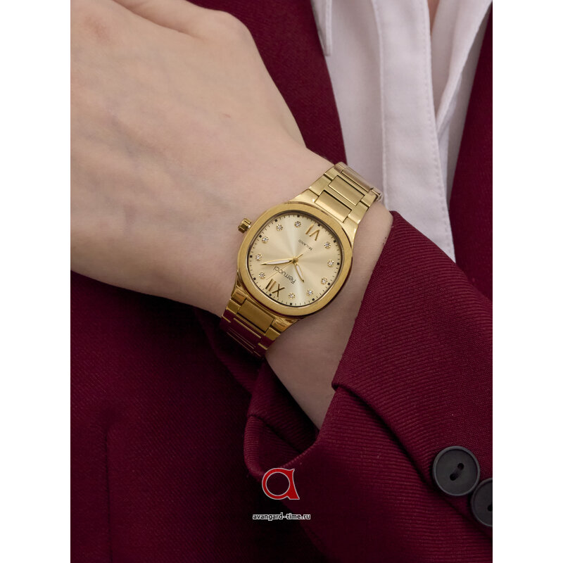 Мягкий и удобный ремешок из нержавеющей стали в золотистом цвете не только гармонично завершае образ, но и обеспечивает комфортное ношение. Длина ремешка составляет 160 мм, а ширина — 18 мм, что позволяет идеально подогнать часы для любого запястья.