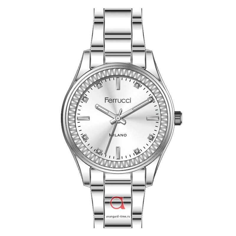 С стильным аналоговым способом отображения времени и утончённым хромированным корпусом, часы FERRUCCI обладают не только функциональностью, но и привлекательным внешним видом. Цвет циферблата — нежный серебристый, а изящные стразы придают дополнительный шик, делая ваш образ по-настоящему запоминающимся.