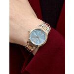 Корпус часов выполнен из прочного сплава (alloy) с хромированным покрытием, что придаёт им современный и привлекательный вид. Ремешок из нержавеющей стали розового золота добавляет роскошный акцент и обеспечивает комфорт при ношении. Глубокий голубой циферблат с комбинированной индикацией и блестящими стразами привлекает внимание и делает каждый взгляд на часы особенно приятным.