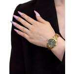 Способы отображения времени комбинируют аналоговый и кристаллический дисплей, а зелёный циферблат с добавлением стильных страз придаёт этому аксессуару особую изюминку. Изготовленные из высококачественного сплава и нержавеющей стали, корпус и браслет обеспечивают долговечность и износостойкость. Золотистый цвет придаёт часам шикарный вид, который идеально дополнит любой наряд, будь то повседневный или вечерний.