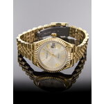Золотистый цвет корпуса и браслета из нержавеющей стали придает часам изысканный вид. Комбинированная индикация и календарь обеспечивают точность показаний. Часы работают от батарейки, что обеспечивает длительный срок службы.