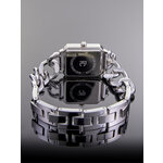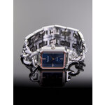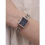 Часы имеют прямоугольную форму и выполнены в стильном хромированном корпусе, который гармонично сочетается с надежным браслетом из нержавеющей стали. Цвет циферблата поразит вас своим глубоким синим оттенком, который добавляет выразительности и становится ярким акцентом в любом наряде. Отметки на циферблате обеспечивают легкость восприятия времени, а минеральное стекло защищает часы от царапин и повреждений.