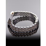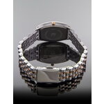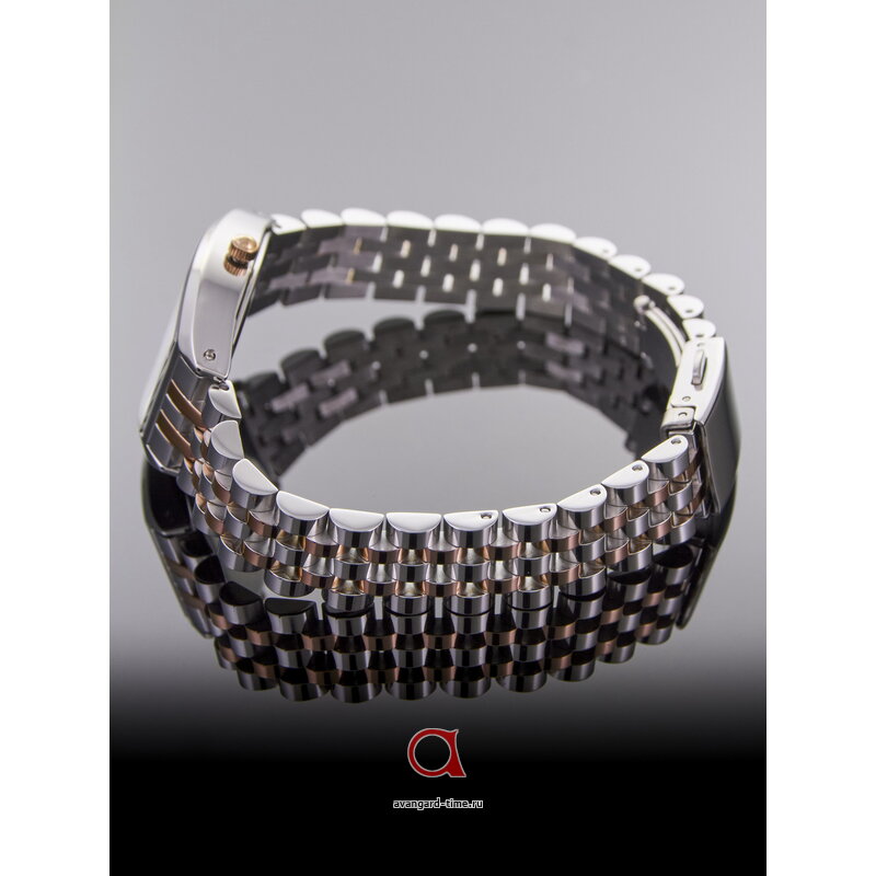 Часы имеют бочкообразную форму корпуса, выполненного из хромированного сплава. Нержавеющая сталь использована для изготовления браслета, который также хромированного цвета. Черный цвет циферблата гармонично сочетается с хромом, создавая элегантный и стильный образ. Минеральное стекло устойчиво к царапинам и внешним воздействиям.