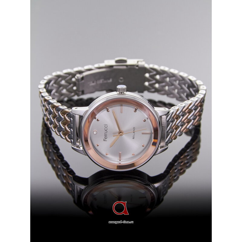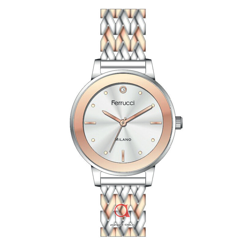 Шикарные женские часы FERRUCCI 03496-02 - идеальный аксессуар для стильной и модной леди! Эти часы имеют аналоговый способ отображения времени, классическую круглую форму и модный цвет корпуса - хром. Благородный ремешок из нержавеющей стали в розовом золоте добавит изысканности вашему образу. Серебристый циферблат с отметками и стразами придает часам изысканности и шарма. Кварцевый механизм обеспечивает точность хода, а минеральное стекло защитит циферблат от повреждений. Часы водонепроницаемы (до 3 Bar) и подходят для повседневного использования. Гарантия на изделие - 1 год. Эти часы подойдут взрослой женщине, которая ценит качество и стиль. Бренд FERRUCCI гарантирует высокое качество и долговечность изделия. Приобретите эти шикарные часы и добавьте шарма своему образу! Производство - Китай.
