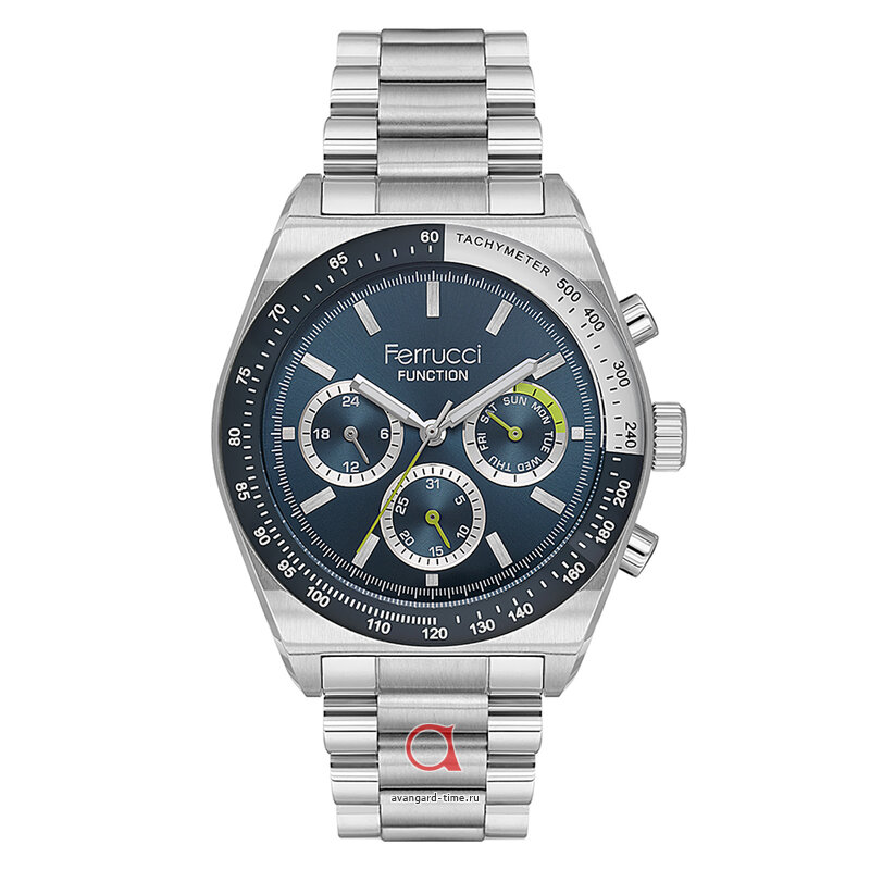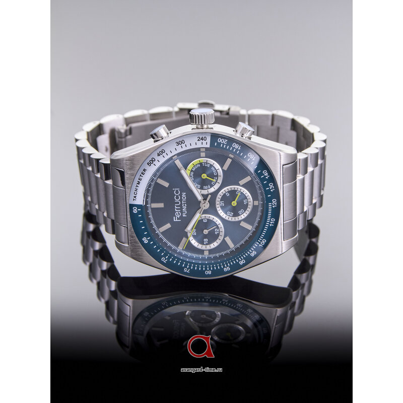 Шикарные наручные часы FERRUCCI 03497-02 стильного и классического дизайна станут незаменимым аксессуаром для взрослого мужчины. Они имеют аналоговый способ отображения времени с синим циферблатом и отметками. Подсветка делает использование удобным в любое время суток.