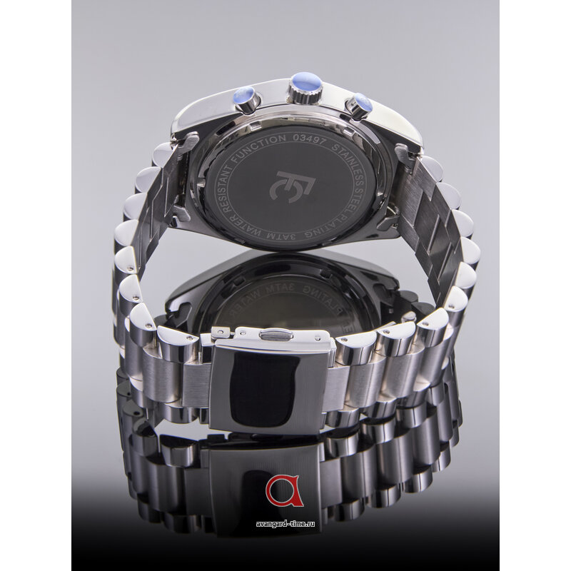 Эти элегантные часы имеют хромированный корпус из сплава Alloy, нержавеющий стальной браслет и минеральное стекло. Степень водонепроницаемости 3 Bar позволяет использовать их в повседневной жизни безопасно. Кроме того, у часов есть дополнительные циферблаты и календарь.