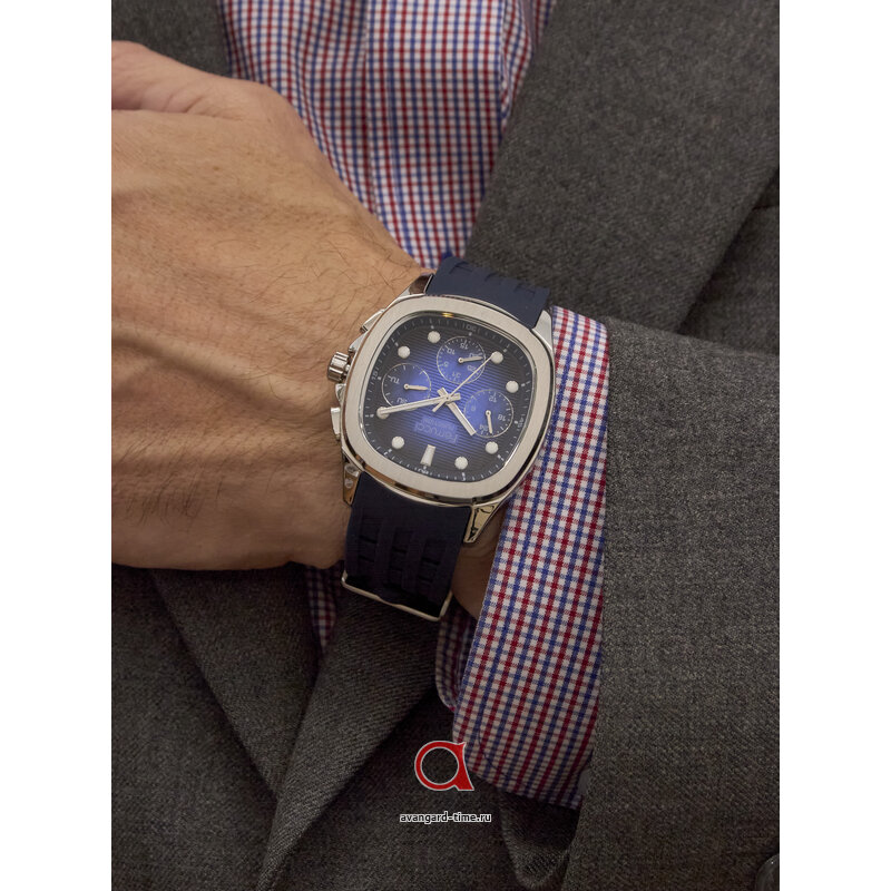 Часы оснащены подсветкой, что позволяет легко ориентироваться даже в условиях недостаточной освещенности. Дополнительные действующие циферблаты и встроенный календарь делают устройство не только модным аксессуаром, но и функциональным спутником вашего дня. Кварцевый механизм с батарейным источником энергии обеспечивает точность и надежность в каждодневной эксплуатации.