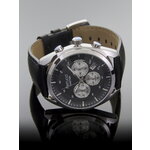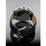 Их хромированный корпус и черный кожаный ремешок создают элегантный образ, который подчеркнет ваш безупречный вкус. Темно-серый циферблат и дополнительные функции, такие как календарь и второй часовой пояс, делают их еще более удобными и практичными.