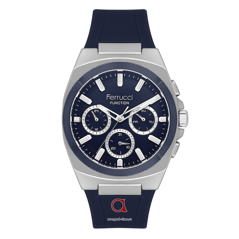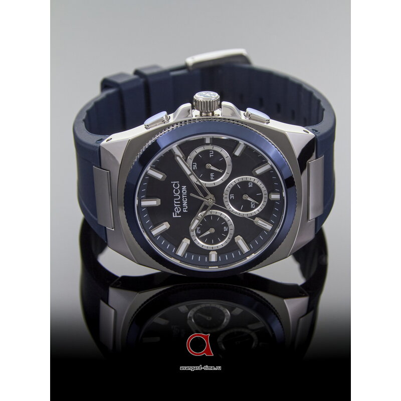 Шикарные часы FERRUCCI 03502-04 станут отличным аксессуаром для успешных мужчин! Спортивный стиль и синий цвет браслета и циферблата придадут образу яркости и динамичности. Аналоговый способ отображения времени с отметками и дополнительными циферблатами делает часы удобными и функциональными. Подсветка позволит удобно смотреть время даже в темное время суток. Кроме того, часы оснащены календарем и имеют класс защиты от воды 3 Bar. Материал корпуса - Alloy, а стекло - минеральное, что обеспечивает долговечность и надежность. Источник энергии - батарейка, так что они будут работать долго и без проблем. Длина ремешка 195 мм, ширина 26 мм. Гарантия на часы - 1 год. Подарите себе стильные и качественные часы FERRUCCI 03502-04 и будьте в центре внимания! Made in China.