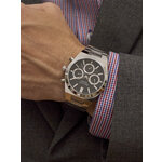 Способ отображения времени — аналоговый, что придаёт часам элегантный вид и обеспечивает лёгкость считывания времени. Чёрный циферблат эффектно контрастирует с хромированным корпусом и браслетом, выполненным из нержавеющей стали, что добавляет часам изысканности. Круглая форма и высококачественное минеральное стекло делают их как стильными, так и долговечными.