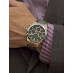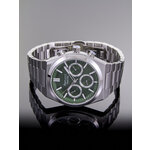 Зеленый циферблат, выделяющийся своей уникальностью, гармонично контрастирует с хромированным браслетом из нержавеющей стали. Длина ремешка составляет 175 мм, а ширина – 25 мм, что делает часы удобными для носки на запястье любого размера. Благодаря минеральному стеклу, ваши часы будут защищены от повседневных царапин, а водонепроницаемость класса 3 Bar позволит вам не беспокоиться о погодных условиях.