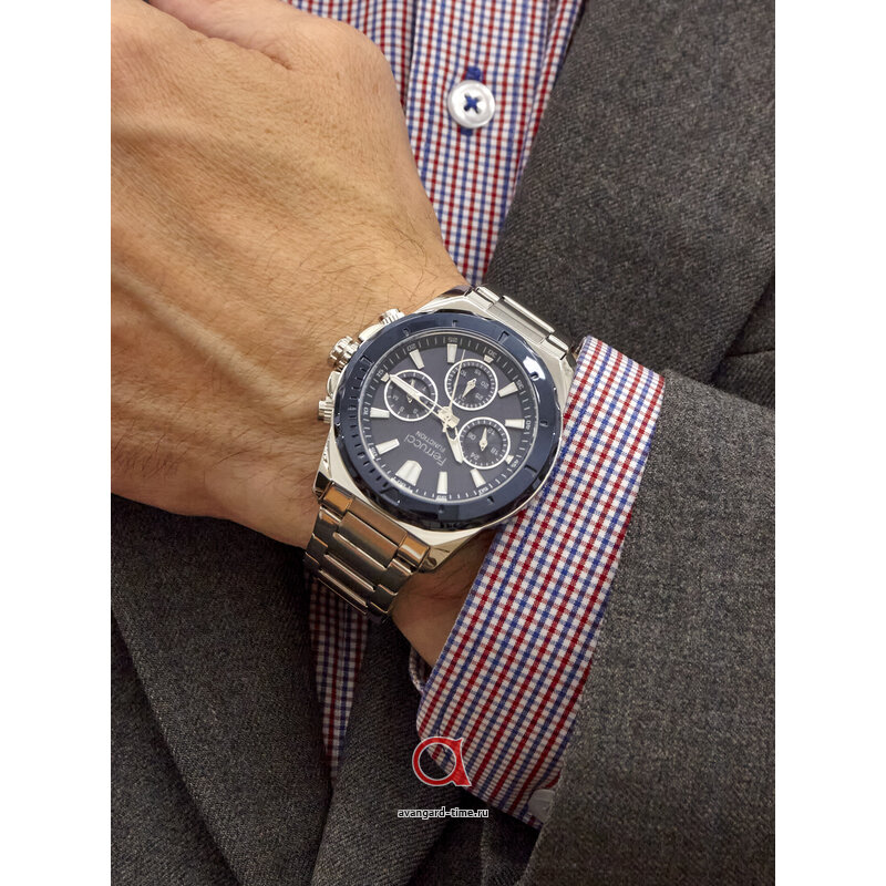 Корпус из прочного хромированного сплава и блестящий серебристый ремешок из нержавеющей стали обеспечивают не только эстетическую привлекательность, но и долговечность. Круглая форма корпуса и стильный синий циферблат делают часы универсальным аксессуаром, подходящим как для деловых встреч, так и для повседневной носки.