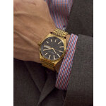 Корпус часов выполнен из легкого и прочного сплава, излучающего утонченный золотистый блеск. Этот цвет подчеркивает стиль и статус владельца, создавая ощущение роскоши. Нержавеющая сталь, из которой изготовлен браслет, не только добавляет долговечности, но и обеспечивает комфорт при носке. Длина ремешка – 175 мм, а ширина – 20 мм, что позволяет идеально подогнать часы под ваше запястье.