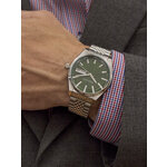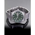 Корпус круглой формы изготовлен из прочного легированного материала (Alloy) и покрыт хромом, что придаёт часам элегантный и современный вид. Яркий зелёный циферблат с чёткими отметками позволяет удобно считывать время в любых условиях, а подсветка обеспечивает отличную видимость даже в темноте.