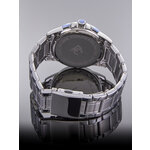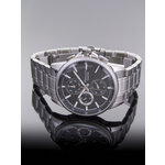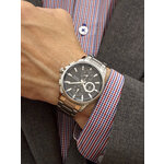 Корпус из хромированного сплава в сочетании с прочным браслетом из нержавеющей стали серебристого цвета создают замечательный контраст с черным циферблатом. На нем удобно расположены отметки времени и дополнительные циферблаты, что делает эти часы не только стильными, но и практичными. Минеральное стекло защищает циферблат от царапин и повреждений, а класс водонепроницаемости 3 Bar позволяет не беспокоиться о попадании воды во время повседневного использования.